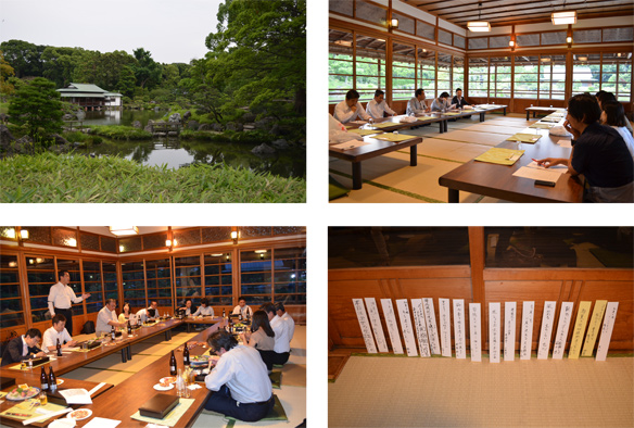 今回の社内研修は墨田区にある清澄庭園で行いました。事業部ごとの報告会の後は、食事を兼ねた慰労会となりました。